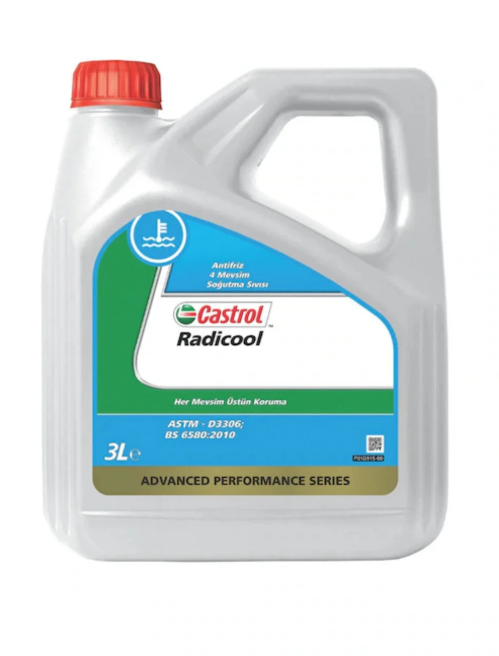 CASTROL RADICOOL MAVİ ANTİFRİZ 3 LT Castrol Radicool Antifriz 3 Lt. 4 Mevsim Soğutma Sıvısı GENİŞ BİR ARAÇ YELPAZESİ İÇİN Radicool, hem benzinli hem de dizel motorlarda kullanıma uygun, monoetilen glikol bazlı, nitrit, amin ve fosfat içermeyen, konsantre bir soğutma sıvısıdır.